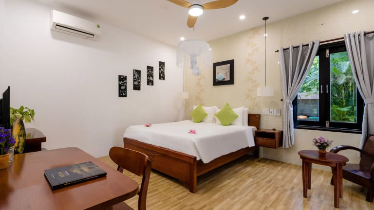 Die Zimmer im An Bang Garden Homestay bieten einen Blick auf den üppigen Garten. Jedes Zimmer ist klimatisiert und verfügt über einen Flachbild-Kabel-TV, eine Minibar und eine Kaffeemaschine. Die Zimmer sind komfortabel eingerichtet und verfügen über ein eigenes Bad mit Badewanne oder Dusche. Kostenlose Pflegeprodukte, Hausschuhe und ein Haartrockner sind ebenfalls vorhanden. Moskitonetze sorgen für zusätzlichen Komfort.