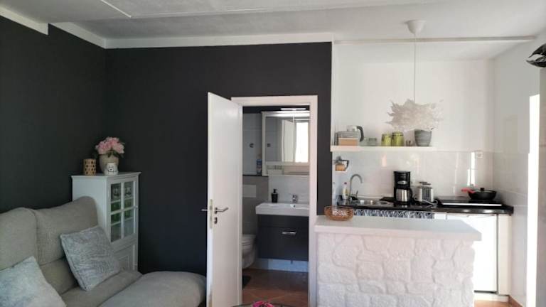Die Ferienwohnung besteht aus einem Schlafzimmer und ist mit einem Flachbild-TV sowie einer voll ausgestatteten Küche ausgestattet, die Kühlschrank und Herdplatte umfasst. Handtücher und Bettwäsche werden bereitgestellt. Nichtraucherzimmer sind vorhanden, und es gelten spezielle Reinigungsrichtlinien, um die Hygiene zu gewährleisten.