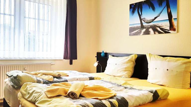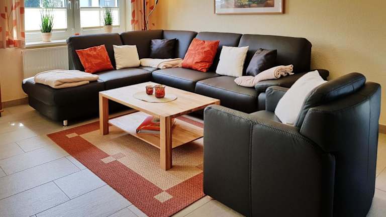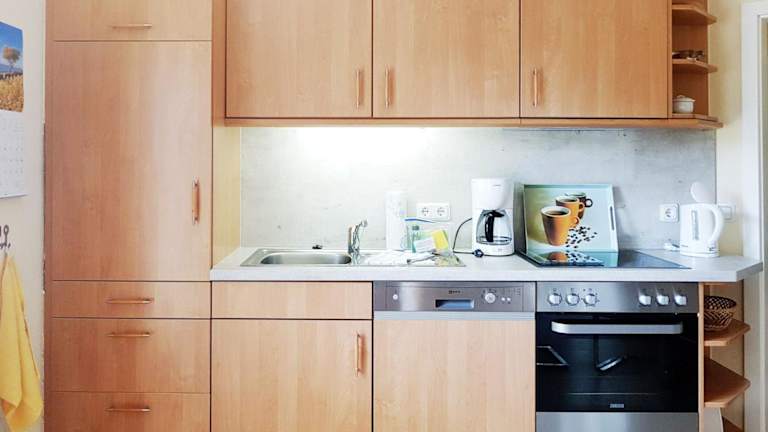 Die Ferienwohnung verfügt über zwei Schlafzimmer, eine voll ausgestattete Küchenzeile mit Kühlschrank und Geschirrspüler sowie ein Badezimmer mit Dusche und Haartrockner. Zur Ausstattung gehören ein TV, ein DVD-Player und ein CD-Player.