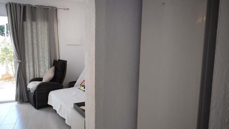 Die Ferienwohnung besteht aus einem Schlafzimmer, einem Wohnzimmer und einer voll ausgestatteten Küche, die mit einem Kühlschrank und einer Kaffeemaschine ausgestattet ist. Des Weiteren beinhaltet die Unterkunft ein Badezimmer mit Dusche und Haartrockner. Handtücher und Bettwäsche werden bereitgestellt. Die Unterkunft ist klimatisiert.