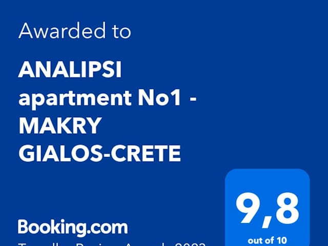 ANALIPSI apartment No1 - MAKRY GIALOS-CRETE ist eine Ferienwohnung, die einen Balkon sowie Blick auf die Berge, die Stadt und das Meer bietet. Die Wohnung ist klimatisiert und bietet Kostenloses WLAN.