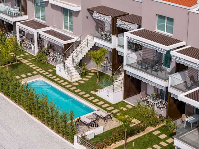 Der Anastasia Residential Complex befindet sich im Herzen von Ofrynio Beach. Nur wenige Schritte von der zentralen Fußgängerzone entfernt, wo Geschäfte, Bars und Restaurants darauf warten, Sie willkommen zu heißen. Neu erbaute, moderne, voll ausgestattete und luxuriöse Apartments – ideal für Familien, Paare oder Freunde – stehen zur Reservierung bereit. Das Innendesign ist minimalistisch und zugleich elegant, während im Außenbereich grüne Gemeinschaftsflächen für alle zur Verfügung stehen, die entspannte Stunden am Gemeinschaftspool genießen möchten. Der Anastasia Residential Complex ist die perfekte Wahl für einen unvergesslichen Urlaub!