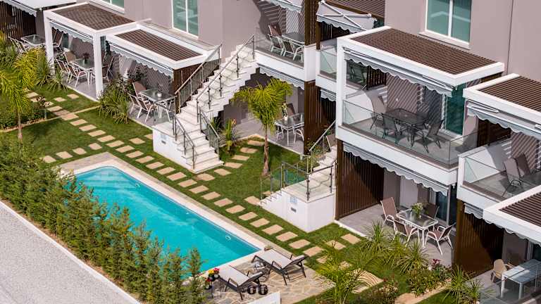 Eine vollständig ausgestattete Einzimmerwohnung, entweder im Erdgeschoss mit einer kleinen Terrasse oder im ersten Stock mit Balkon. Eine vollständig ausgestattete Einzimmerwohnung, entweder im Erdgeschoss mit einer kleinen Terrasse oder im ersten Stock mit Balkon. Beide Apartmenttypen haben Zugang zu einem Gemeinschaftspool. Unsere stilvollen Lofts mit zwei Schlafzimmern sind ideal für Familien, Freunde oder Paare, die zusätzlichen Raum und Komfort suchen. Auf zwei Ebenen verteilt, verfügen diese Lofts über zwei einladende Schlafbereiche – ein privates Schlafzimmer mit Tür sowie ein gemütliches, offenes Schlafzimmer auf der oberen Galerie, das den Wohnbereich überblickt. Die Lofts sind vollständig ausgestattet mit einem Wohnzimmer, einer Kitchenette und einem separaten ersten Schlafzimmer im ersten Stock sowie einem weiteren Schlafzimmer im oberen Stockwerk mit Blicköffnung zum Wohnbereich. Das Apartment hat Zugang zu einem Gemeinschaftspool. Vollständig ausgestattetes Apartment mit zwei separaten Schlafzimmern, entweder im Erdgeschoss mit Terrasse oder im ersten Stock mit Balkon. Beide Apartmenttypen haben Zugang zu einem Gemeinschaftspool. Unsere stilvollen Lofts mit zwei Schlafzimmern sind ideal für Familien, Freunde oder Paare, die zusätzlichen Raum und Komfort suchen. Auf zwei Ebenen verteilt, verfügen diese Lofts über zwei einladende Schlafbereiche – ein privates Schlafzimmer mit Tür sowie ein gemütliches, offenes Schlafzimmer auf der oberen Galerie mit Blick auf den Wohnbereich. Die Lofts sind vollständig ausgestattet mit einem Wohnzimmer, einer Kitchenette und einem separaten ersten Schlafzimmer im ersten Stock sowie einem weiteren Schlafzimmer im oberen Stockwerk mit offener Verbindung zum Wohnbereich.