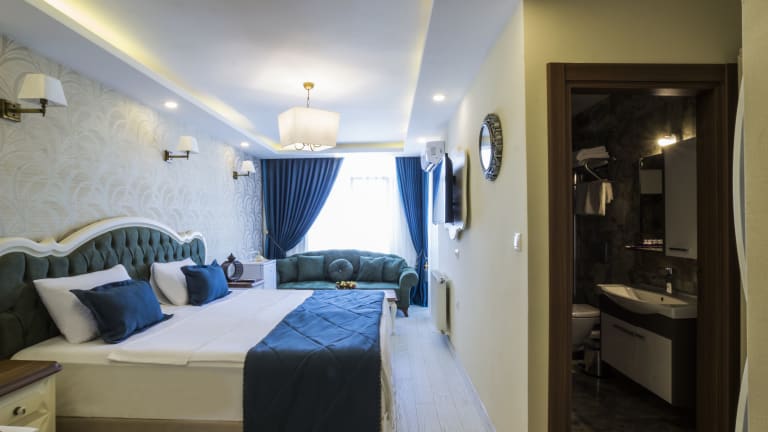 Der gastronomische Bereich umfasst ein Restaurant, das türkische Küche serviert, sowie eine Bar. Ein reichhaltiges Frühstücksbuffet wird täglich angeboten, mit speziellen Optionen für Vegetarier, Veganer und halal-zubereitete Gerichte.