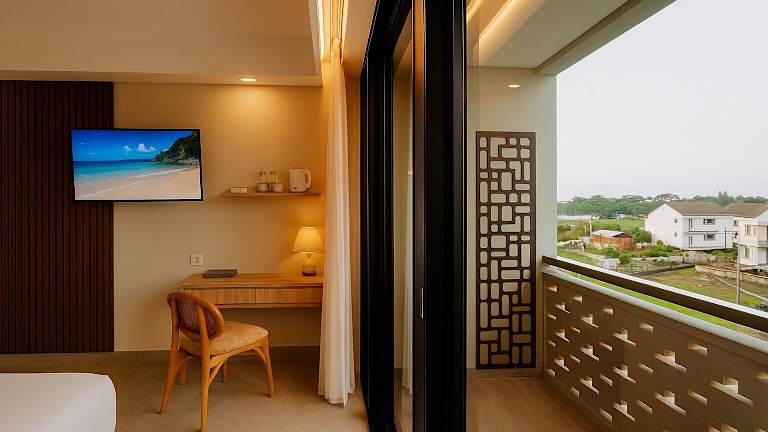 Die klimatisierten Zimmer sind mit einem Schreibtisch, einem Wasserkocher, einem Kühlschrank, einem Safe, einem Flachbild-TV, einer Terrasse und einem eigenen Badezimmer mit einem Bidet ausgestattet. Einige Zimmer bieten Stadtblick und alle verfügen über einen Balkon. Bettwäsche und Handtücher sind in jedem Zimmer vorhanden.