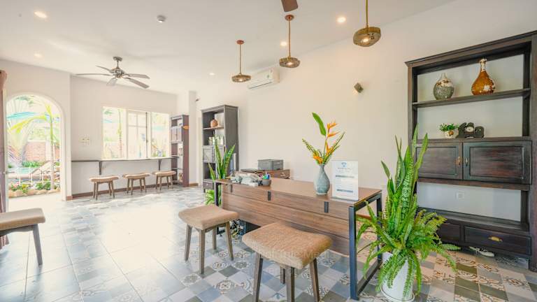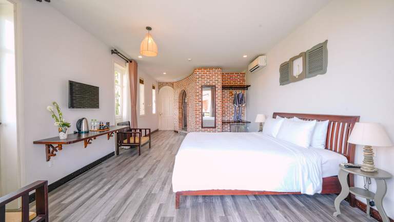 Das Blooms Boutique Village in Hội An ist eine ideale Wahl für Reisende, die einen entspannten und komfortablen Aufenthalt suchen. Mit kostenfreien Fahrrädern, einem Außenpool und einem Garten bietet das Resort eine Vielzahl an Annehmlichkeiten. Das Restaurant verwöhnt die Gäste mit köstlichen vietnamesischen Gerichten. Die Zimmer sind gemütlich eingerichtet und einige bieten einen herrlichen Blick auf den Pool. Genießen Sie ein leckeres Frühstück am Morgen und entspannen Sie auf der Terrasse. Das freundliche Personal steht Ihnen rund um die Uhr zur Verfügung und sorgt dafür, dass Ihr Aufenthalt unvergesslich wird. Die Sehenswürdigkeiten von Hội An, wie die Japanische Brücke und die Versammlungshalle der kantonesisch-chinesischen Kongregation, sind ebenfalls gut erreichbar.