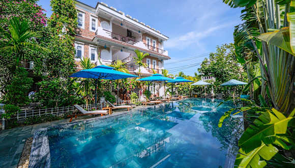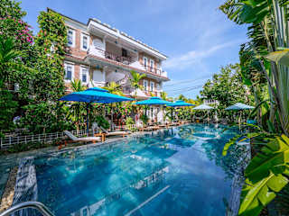Das Blooms Boutique Village in Hội An ist eine ideale Wahl für Reisende, die einen entspannten und komfortablen Aufenthalt suchen. Mit kostenfreien Fahrrädern, einem Außenpool und einem Garten bietet das Resort eine Vielzahl an Annehmlichkeiten. Das Restaurant verwöhnt die Gäste mit köstlichen vietnamesischen Gerichten. Die Zimmer sind gemütlich eingerichtet und einige bieten einen herrlichen Blick auf den Pool. Genießen Sie ein leckeres Frühstück am Morgen und entspannen Sie auf der Terrasse. Das freundliche Personal steht Ihnen rund um die Uhr zur Verfügung und sorgt dafür, dass Ihr Aufenthalt unvergesslich wird. Die Sehenswürdigkeiten von Hội An, wie die Japanische Brücke und die Versammlungshalle der kantonesisch-chinesischen Kongregation, sind ebenfalls gut erreichbar.