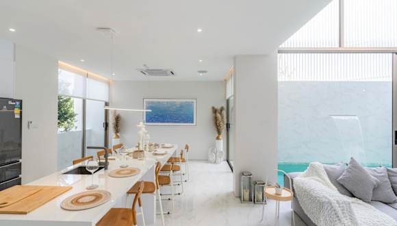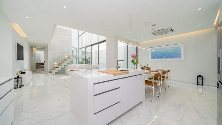 Die Villa umfasst 3 Schlafzimmer, ein Wohnzimmer sowie eine voll ausgestattete Küche mit Kühlschrank und Kaffeemaschine. Es sind 3 Badezimmer mit Dusche und Whirlpool vorhanden. Handtücher und Bettwäsche werden zur Verfügung gestellt, und die Unterkunft ist klimatisiert.