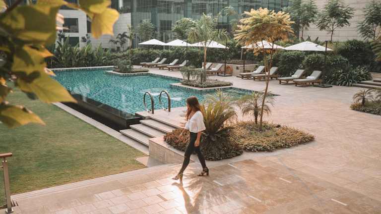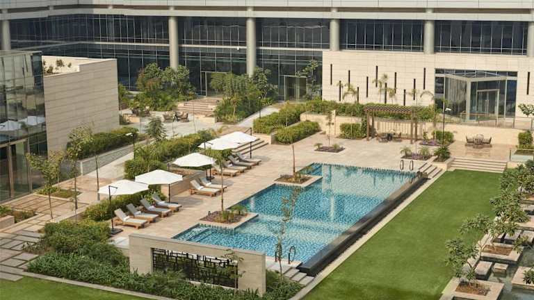 Das Hotel liegt 5 Fahrminuten vom internationalen Flughafen Indira Gandhi entfernt. Die U-Bahn-Station Aerocity befindet sich 200 m entfernt. Das Geschäfts- und Finanzzentrum Connaught Place ist 16 km entfernt, während das Einkaufszentrum Worldmark nur 600 m entfernt ist. Sehenswürdigkeiten wie der Sieges- und Wachturm Qutub Minar sind 13,8 km entfernt, und das Rashtrapati Bhavan liegt 14 km vom Hotel.