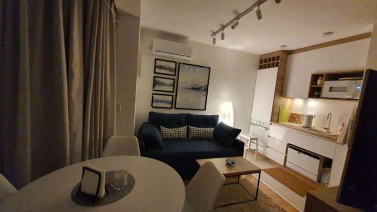 Die Ferienwohnung besteht aus einem Schlafzimmer, einem Wohnzimmer und einer voll ausgestatteten Küche mit Kühlschrank und Wasserkocher. Das Badezimmer ist mit einer Dusche und kostenlosen Pflegeprodukten ausgestattet. Handtücher und Bettwäsche werden bereitgestellt und die Unterkunft bietet klimatisierte Nichtraucherzimmer.