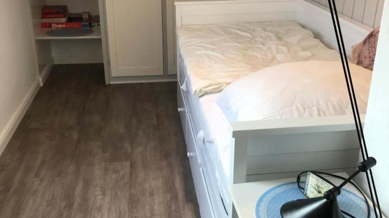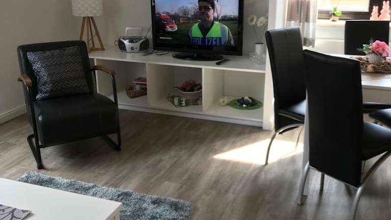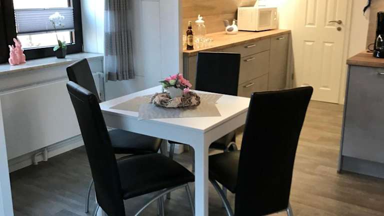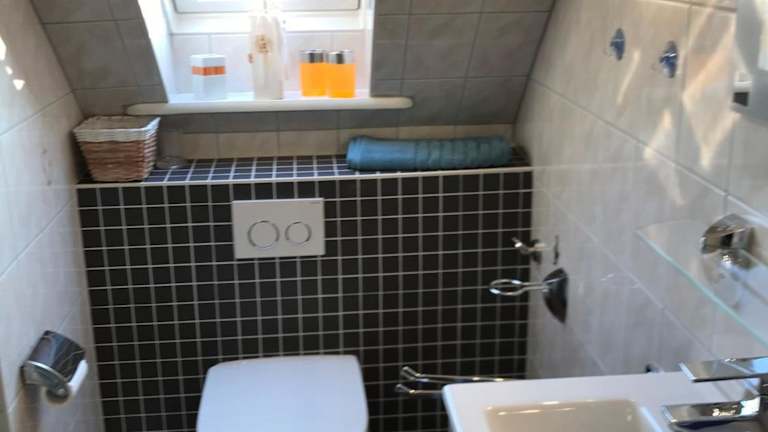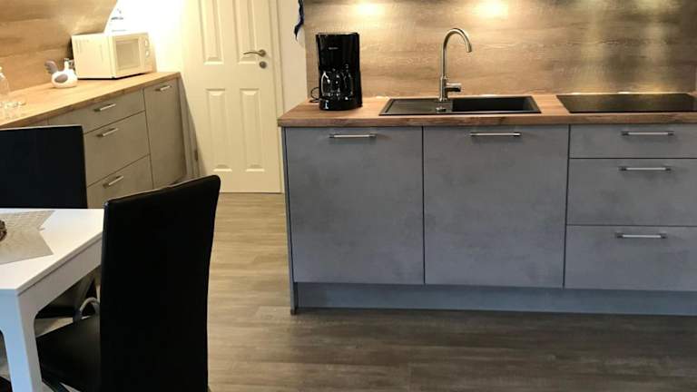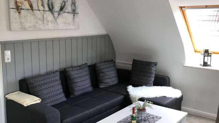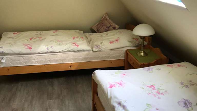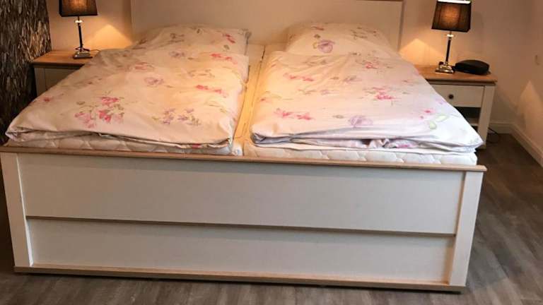 Die Ferienwohnung verfügt über drei Schlafzimmer und eine Küchenzeile, die mit einem Kühlschrank und einem Geschirrspüler ausgestattet ist. Des Weiteren steht ein Badezimmer mit Dusche und Haartrockner zur Verfügung. Handtücher und Bettwäsche werden bereitgestellt.