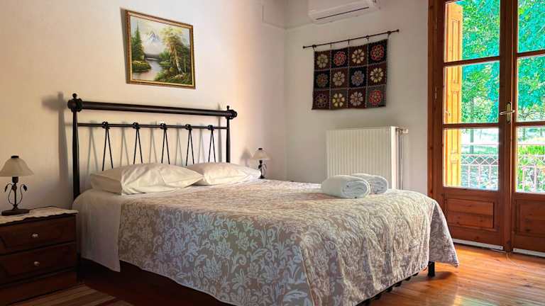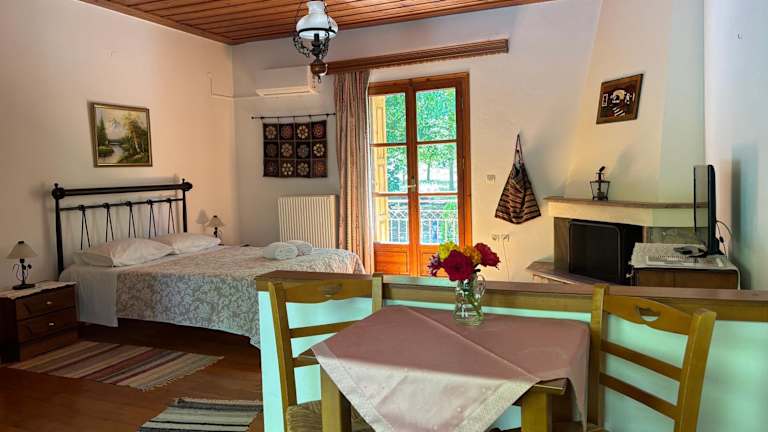 Die geräumigen Zimmer im Andrea Sofi Guesthouse sind traditionell eingerichtet und verfügen über eine Küchenzeile. Die meisten Zimmer sind mit einem großen Kamin ausgestattet und bieten einen Balkon mit Flussblick. Jedes Zimmer verfügt über eine individuell regulierbare Heizung, einen TV und eine Veranda mit Zugang zum Garten. Das traditionelle Dekor und Mobiliar verleihen den Zimmern eine gemütliche Atmosphäre.