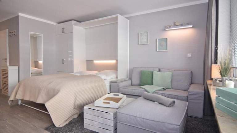 Die Wohnung bietet ein Wohnzimmer, ausgestattet mit einem TV. Die Küchenzeile ist mit einem Geschirrspüler, einer Mikrowelle, einem Toaster, einer Kaffeemaschine und einem Wasserkocher vollständig eingerichtet. WLAN steht kostenfrei zur Verfügung und die Ausstattung umfasst Nichtraucherzimmer. Es ist ein Aufzug vorhanden.