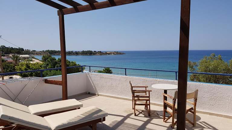 In der Café-Taverne neben der Unterkunft können Sie ein köstliches Frühstück und Mittagessen genießen. Der atemberaubende Meerblick macht das Essen zu einem besonderen Erlebnis.