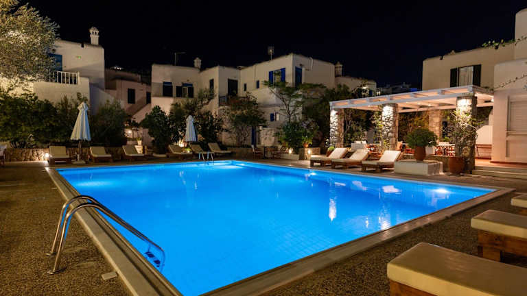 In der Andromeda Residence können Sie sich am Pool entspannen und die Ruhe des Innenhofs genießen. Die nahegelegenen Sandstrände von Mykonos bieten zahlreiche Wassersportmöglichkeiten wie Schwimmen, Schnorcheln und Tauchen. Die günstige Lage der Residence ermöglicht es Ihnen auch, die Sehenswürdigkeiten und das Nachtleben von Mykonos zu erkunden.