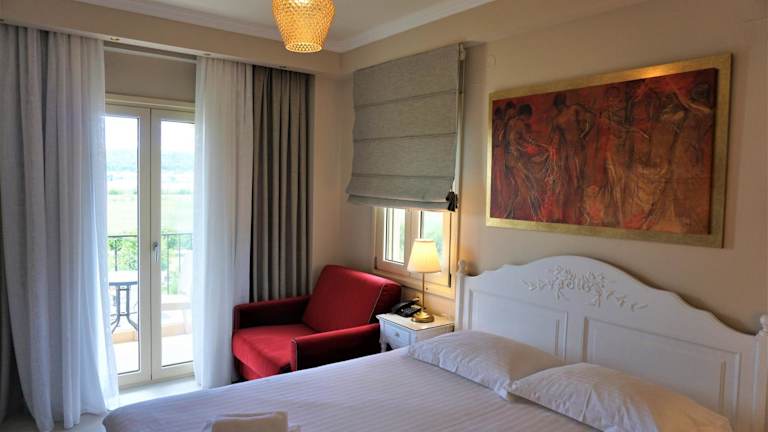 Die Zimmer im Anemolia Resort and Spa sind geschmackvoll eingerichtet und bieten einen Charakter voller Charme. Mit Möbeln im alten Stil und Holzböden strahlen die Zimmer eine warme und gemütliche Atmosphäre aus. Die lichtdurchfluteten Innenräume bieten einen Blick auf den See Pamvotida und die umliegenden Gärten.