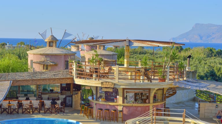 Das Anemomili Village verfügt über Studios und Apartments, die in einem windmühlenartigen Stil gestaltet sind. Die Unterkünfte sind um einen großen Außenpool organisiert, welcher ein umweltfreundliches Reinigungssystem besitzt. Zusätzlich gibt es eine Sonnenterrasse und verschiedene Annehmlichkeiten, die den Aufenthalt angenehm gestalten.