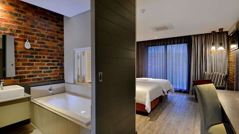 Die Zimmer sind klimatisiert und verfügen über ein Kingsize-Bett sowie moderne Annehmlichkeiten wie eine Minibar, einen Safe, einen Schreibtisch und kostenfreies WLAN. Jedes Zimmer ist mit einem Fernseher, Tee-/Kaffeemaschine und wesentlichen Badezimmerartikeln ausgestattet.
