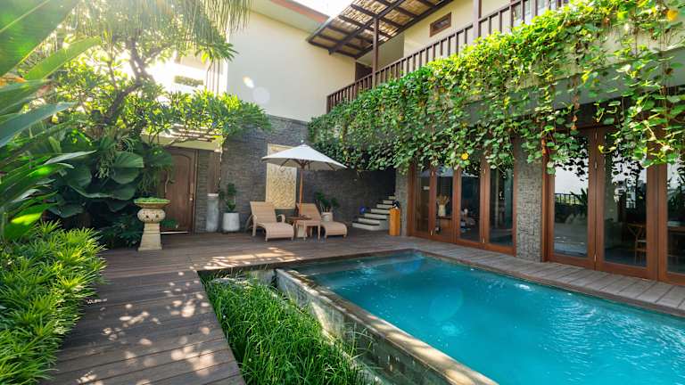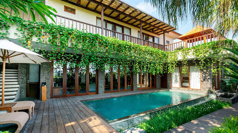 Die Angan-Angan Villas in Canggu bieten Ihnen eine komfortable und entspannte Unterkunft mit herrlichem Poolblick und einer Vielzahl von Annehmlichkeiten. Genießen Sie den Außenpool, den Garten und die Terrasse sowie kostenloses WLAN und Privatparkplätze. Die gut ausgestatteten Wohneinheiten verfügen über eine voll ausgestattete Küche, einen Essbereich, einen Flachbild-Sat-TV und ein eigenes Bad. Beginnen Sie Ihren Tag mit einem köstlichen kontinentalen Frühstück und erkunden Sie die Umgebung mit einem Mietwagen, den Sie in der Unterkunft buchen können. Die Strände Nelayan und Canggu sind nur 1,9 km entfernt und der internationale Flughafen Denpasar ist ebenfalls gut erreichbar.