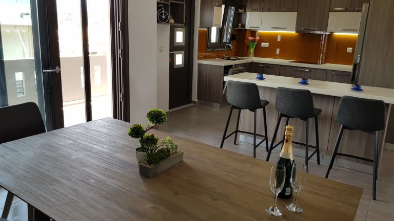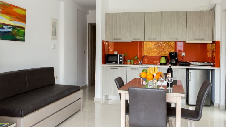 Die Wohneinheiten sind mit kostenlosem WLAN, Klimaanlage und einem Flachbild-TV ausgestattet. Jede Unterkunft verfügt über einen Sitzbereich, eine voll ausgestattete Küche mit Kühlschrank und Mikrowelle sowie ein eigenes Badezimmer, das mit einem Bidet und einem Haartrockner ausgestattet ist. Einige Zimmer bieten zusätzlich einen Balkon oder eine Veranda/Patio mit Meerblick.