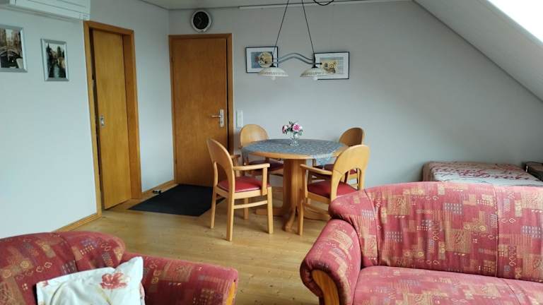 Die Angelika Ferienwohnung im DG bietet eine Gemeinschaftslounge und verschiedene Freizeitmöglichkeiten. Kostenfreies WLAN und Stadtblick sind ebenfalls vorhanden. Die Ferienwohnung ist klimatisiert und beherbergt 3 Schlafzimmer, ein Wohnzimmer sowie eine voll ausgestattete Küche. Zudem steht den Gästen ein kostenloser Privatparkplatz zur Verfügung.