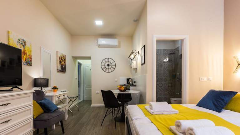 Angie Central Rooms bietet klimatisierte Unterkünfte mit modernem Ambiente und Parkettböden. Die Unterkunft legt Wert auf Sauberkeit und Hygiene und verwendet Reinigungsmittel, die wirksam gegen Coronavirus sind. Es stehen Nichtraucherzimmer zur Verfügung und ein kontaktloser Check-in sowie Check-out wird angeboten.