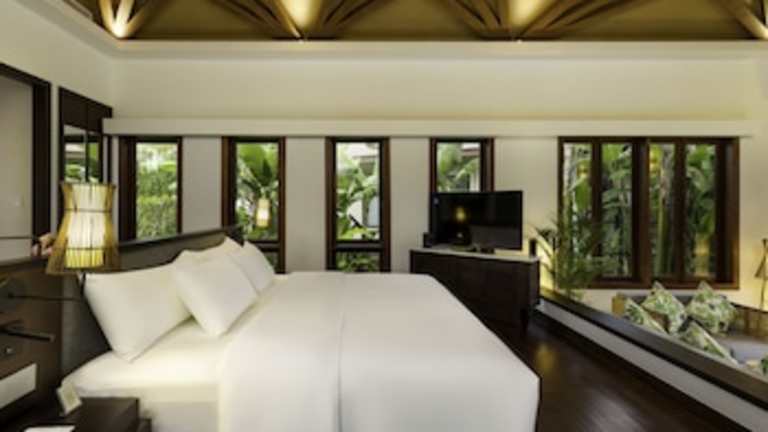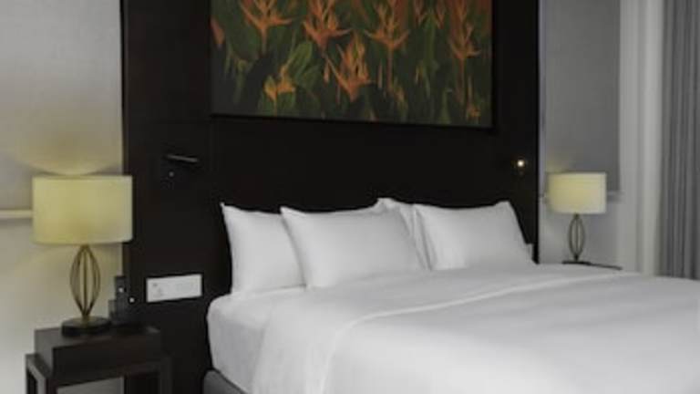 Die Zimmer sind klimatisiert und verfügen meist über einen Balkon mit Blick auf den Pool. Zur Ausstattung gehören ein Kingsizebett, ein Sofabett, ein Schreibtisch, eine Minibar und ein Kühlschrank. Die Badezimmer sind mit einer Dusche, einer Badewanne, einem Haartrockner sowie Bademänteln ausgestattet und bieten Kosmetikartikel und eine Auswahl an Handtüchern.