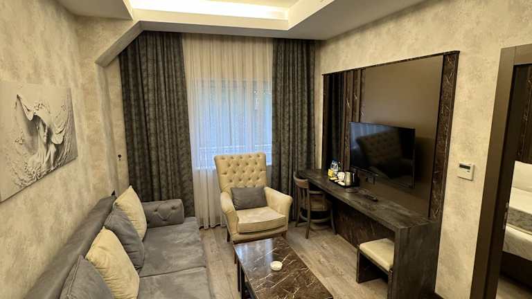 Die Zimmer im Ankara Royal Hotel sind mit Klimaanlage, einem Safe, einem Flachbild-TV und einem Kleiderschrank ausgestattet. Einige Zimmer verfügen über einen Balkon. Zusätzlich gibt es einen Wasserkocher in den Zimmern.