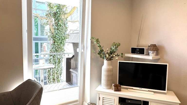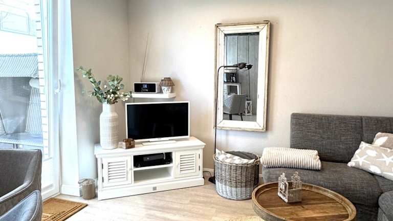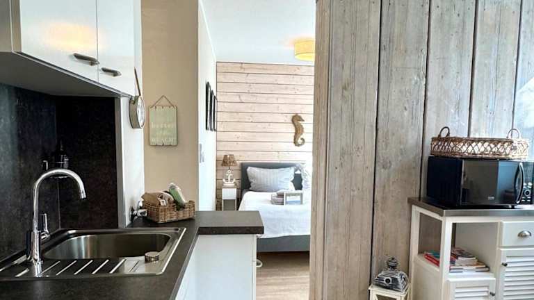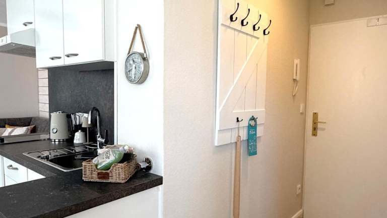 Die Ferienwohnung besteht aus einem Schlafzimmer, einem Wohnzimmer, einer voll ausgestatteten Küche mit Kühlschrank und Kaffeemaschine sowie einem Badezimmer mit Dusche und Haartrockner. Zur Ausstattung gehören ein Flachbild-TV mit Kabelkanälen und ein DVD-Player.