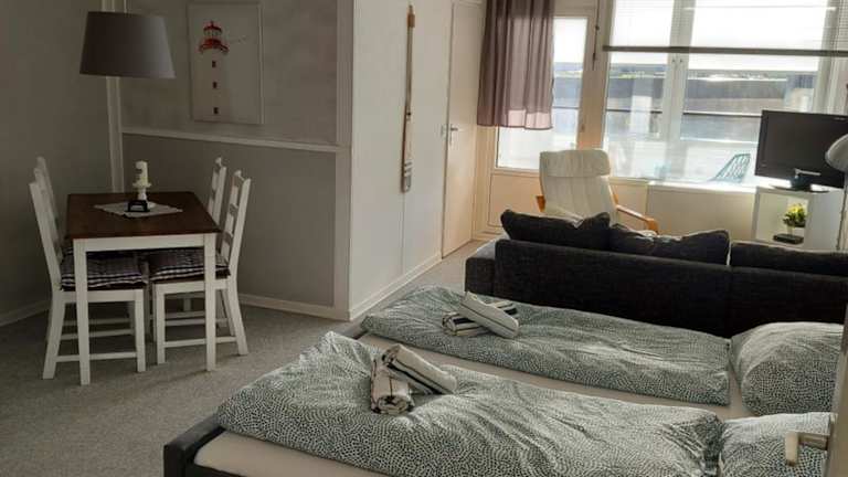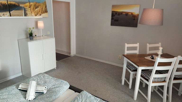 Ankerplatz ist eine Ferienwohnung, die eine komfortable Unterkunft mit einem Schlafzimmer bietet. Die Ausstattung umfasst ein Wohnzimmer mit einem Flachbild-TV, eine voll ausgestattete Küche sowie ein Badezimmer mit Dusche.