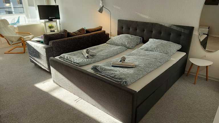 Die Ferienwohnung verfügt über ein Schlafzimmer, ein Wohnzimmer mit einem Flachbild-TV, eine voll ausgestattete Küche mit Kühlschrank und Geschirrspüler sowie ein Badezimmer mit Dusche. Gegen Aufpreis können Handtücher und Bettwäsche bereitgestellt werden.
