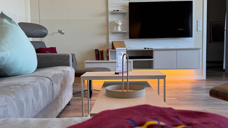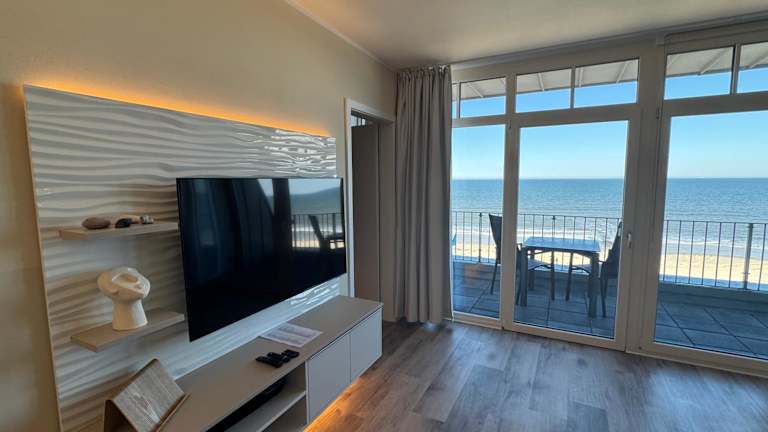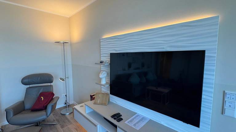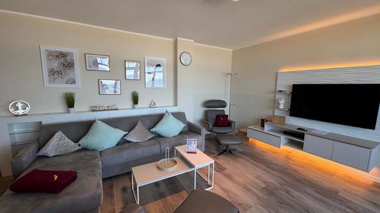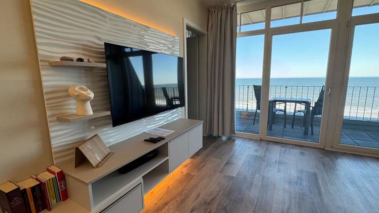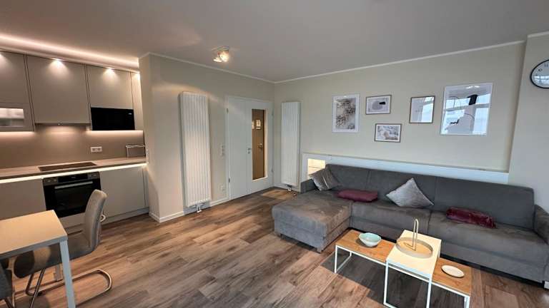 Die Ferienwohnung verfügt über zwei Schlafzimmer und ist mit einem Flachbild-TV mit Kabelkanälen ausgestattet. Eine voll ausgestattete Küche beinhaltet einen Kühlschrank, einen Geschirrspüler, eine Waschmaschine, einen Ofen und eine Herdplatte.