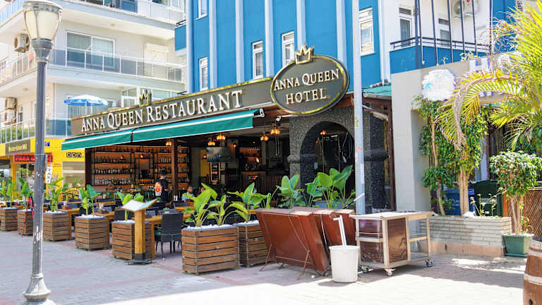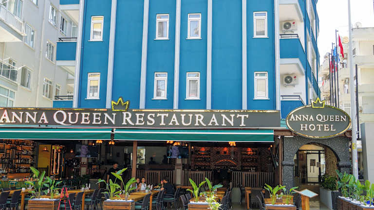 Das Anna Queen Hotel befindet sich in Alanya, direkt am Strand. Es liegt 200 Meter vom Kleopatra Strand und 1,8 Kilometer vom öffentlichen Strand Alanya entfernt. In der Nähe befinden sich interessante Orte wie der Wasserpark Alanya sowie das Archäologische Museum Alanya und die Höhle Damlataş.