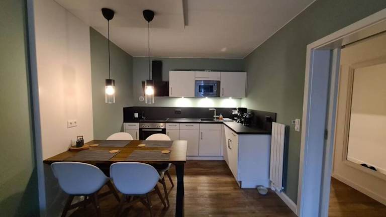 Die Ferienwohnung verfügt über 2 Schlafzimmer, eine Küche mit Kühlschrank und Geschirrspüler, ein Badezimmer mit Dusche sowie einen Flachbild-TV und einen Sitzbereich. Zur Ausstattung gehören zudem Handtücher und Bettwäsche. Die Unterkunft bietet einen Balkon und eine Kaffeemaschine. WLAN ist in allen Bereichen verfügbar.