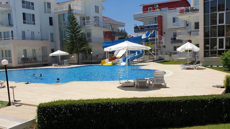 Der Antalya belek 4 nirvana club first floor two bedrooms pool view with water slide close to center - belek beach park bietet eine Unterkunft zur Selbstverpflegung mit kostenfreiem WLAN und einem Außenpool. Die Unterkunft umfasst einen Balkon, einen Innenhof und eine Terrasse, sowie eine komplett ausgestattete Küche mit Geschirrspüler und Backofen. Zu den Annehmlichkeiten zählen ein Garten mit Grillmöglichkeiten und eine Gemeinschaftslounge.