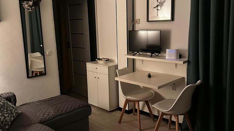 Die Ferienwohnung besteht aus einem separaten Schlafzimmer, einem Wohnzimmer und einer voll ausgestatteten Küchenzeile. Des Weiteren ist ein Badezimmer und ein Flachbild-TV vorhanden. Die Unterkunft ist klimatisiert und bietet Nichtraucherbereiche.