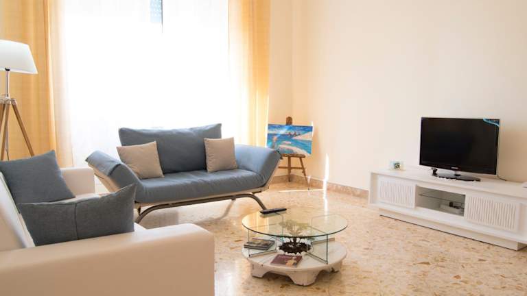 Das klimatisierte Apartment bietet Platz für bis zu 4 Personen und verfügt über 2 Schlafzimmer, ein geräumiges Wohnzimmer und eine voll ausgestattete Küche mit Kühlschrank und Kaffeemaschine. Die 2 Badezimmer sind mit einem Bidet und einer Dusche ausgestattet. Handtücher und Bettwäsche werden gestellt, so dass Sie sich um nichts kümmern müssen.