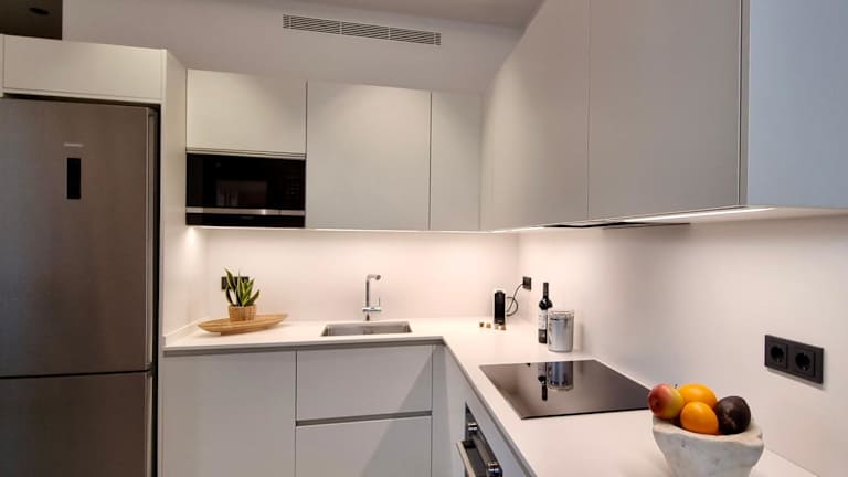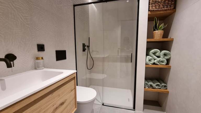Die Ferienwohnung verfügt über ein Schlafzimmer, eine Küche ausgestattet mit Kühlschrank und Geschirrspüler, sowie ein Badezimmer mit Dusche. Hinzu kommt ein Flachbild-TV und ein Sitzbereich. Handtücher und Bettwäsche werden bereitgestellt.