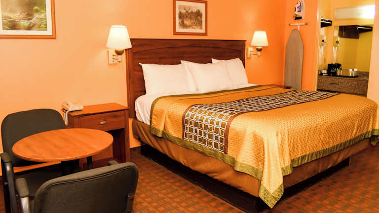 Die klimatisierten Zimmer im Antlers Inn Goliad Hotel sind komfortabel und modern eingerichtet. Jedes Zimmer verfügt über einen Flachbild-Sat-TV mit HBO-Filmkanälen für Ihre Unterhaltung. Eine Mikrowelle, ein Kühlschrank und eine Kaffeemaschine sind ebenfalls vorhanden, um Ihren Aufenthalt angenehm zu gestalten. Es gibt auch einen runden Tisch und ein Bügeleisen/-brett für Ihren Komfort.