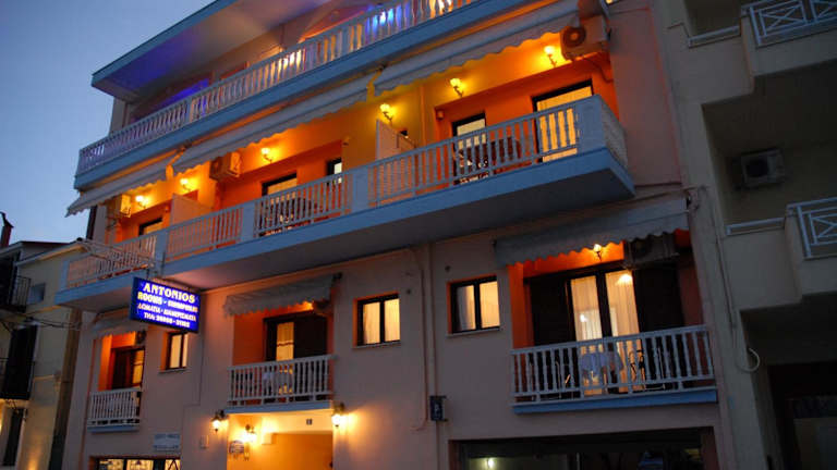 Antonios Rooms bietet Übernachtungsmöglichkeiten mit kostenlosen Annehmlichkeiten wie Privatparkplätzen, kostenlosem WLAN und einem Garten. Die Unterkunft zeichnet sich durch eine rund um die Uhr besetzte Rezeption sowie einen Conciergeservice aus. Zudem gibt es einen Gemeinschaftsbereich für Gäste. Haustiere sind in der Unterkunft gestattet.