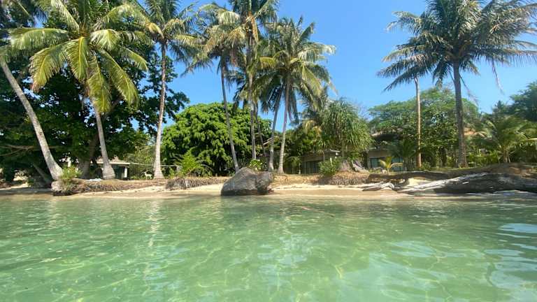 Das Koh Mak Ao Kao White Sand Beach befindet sich direkt am unberührten Strand von Ao Kao auf der Insel Koh Mak. Umgeben von hohen Palmen und Kokosplantagen bietet die Unterkunft eine idyllische Lage mit Blick auf das Meer. Die Insel Koh Mak ist bekannt für ihre unberührte Natur und ihre traumhaften Strände. Hier können Sie sich in Ruhe erholen und die Schönheit der Umgebung genießen.