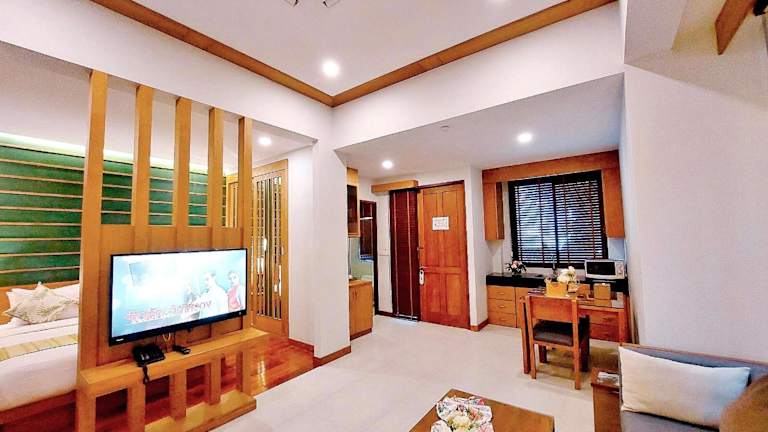 Das Aonang Phu Dahla Private Pool & Sea View - SHA Plus befindet sich in Strandnähe in Ao Nang Beach. Von hier aus haben Sie einen atemberaubenden Blick auf das Meer und können die Schönheit der Küste genießen. Beliebte Sehenswürdigkeiten wie der Strand Ao Nang, der Strand Nopparat Thara und das Boxstadion Ao Nang Krabi befinden sich in der Nähe und laden zu unvergesslichen Erlebnissen ein. Der internationale Flughafen Krabi ist nur 24 km entfernt und bietet eine bequeme Anreisemöglichkeit.
