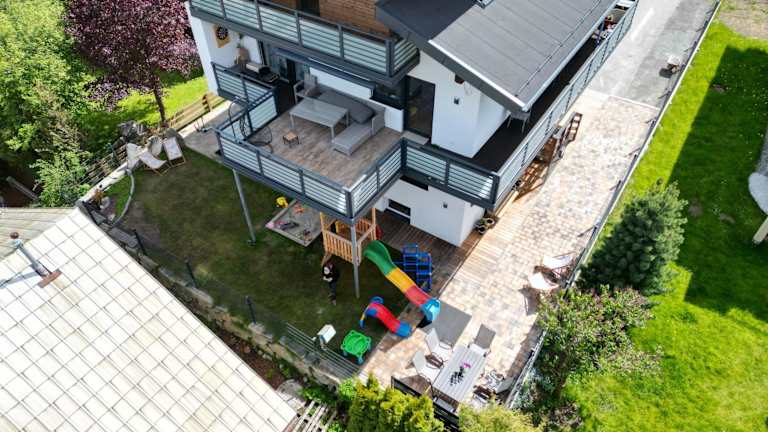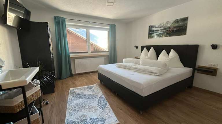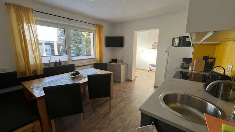 Die Ferienwohnung bietet eine gut ausgestattete Küche mit Kühlschrank, Geschirrspüler und Ofen. Des Weiteren ist ein Badezimmer mit Dusche und Haartrockner vorhanden. Die Ausstattung umfasst einen Satelliten-Flachbild-TV sowie einen schönen Blick auf die Berge.