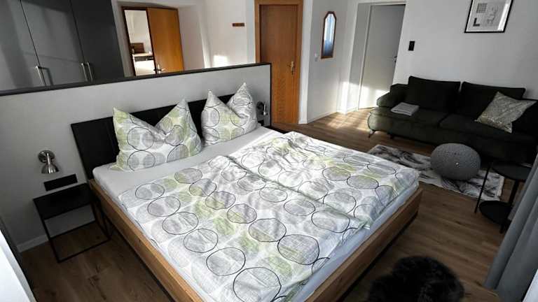 Die Ferienwohnung besteht aus 2 separaten Schlafzimmern und 2 Badezimmern. Sie ist mit einer voll ausgestatteten Küche ausgestattet, die über einen Essbereich, einen Kühlschrank und ein Wohnzimmer mit einem Flachbild-TV verfügt. Handtücher und Bettwäsche werden bereitgestellt.