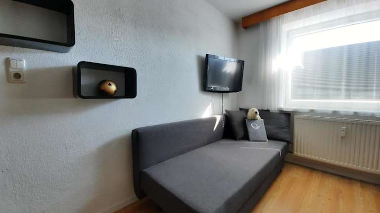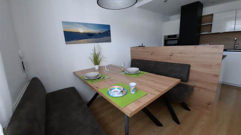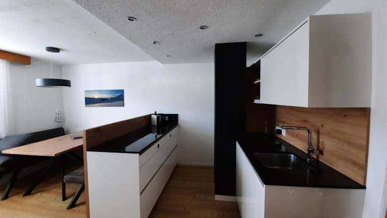 Die Ferienwohnung umfasst zwei Schlafzimmer und ein Wohnzimmer. Sie ist mit einem Flachbild-TV ausgestattet und beinhaltet eine gut ausgestattete Küche mit Kühlschrank und Geschirrspüler. Das Bad verfügt über zwei separate Badezimmer mit Dusche. Handtücher und Bettwäsche werden bereitgestellt. Ein Balkon mit Blick auf die Berge ergänzt die Ausstattung.