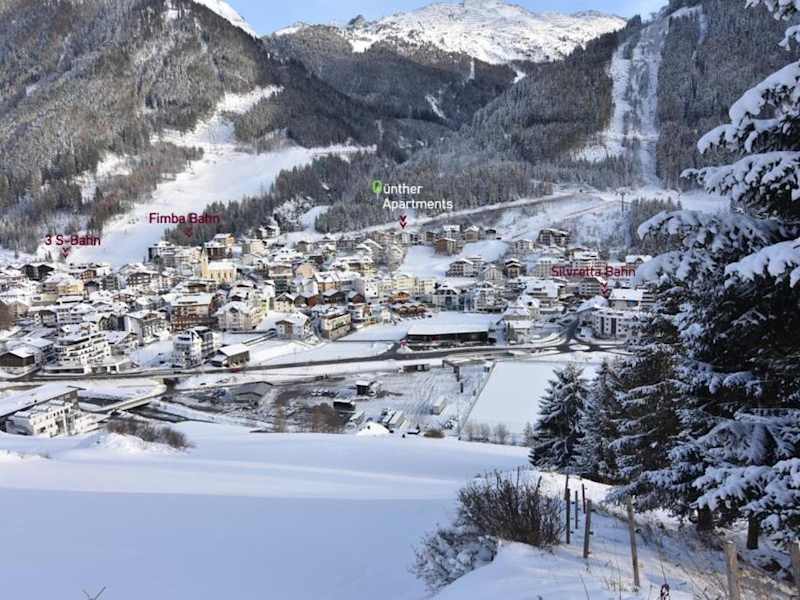 Das Apart Günther liegt in Ischgl, etwa 20 km vom Fluchthorn entfernt. Die Silvretta Hochalpenstraße ist 21 km entfernt und der Bahnhof Sankt Anton am Arlberg erreicht man nach 44 km. Der Flughafen Innsbruck ist etwa 95 km entfernt.