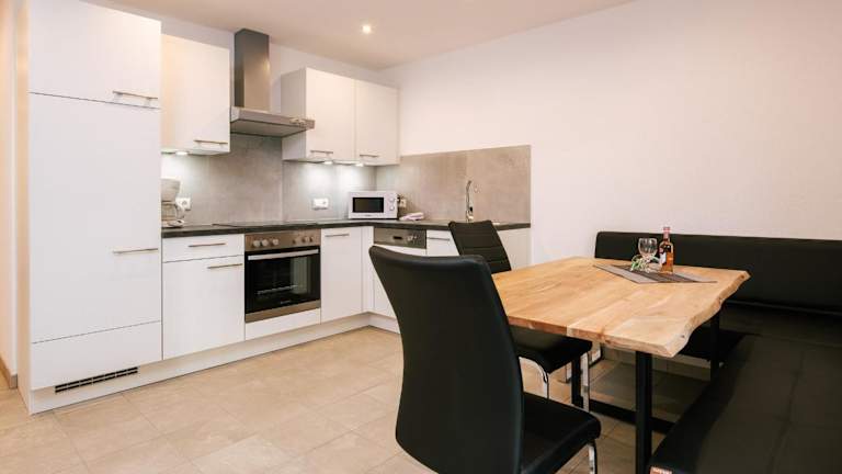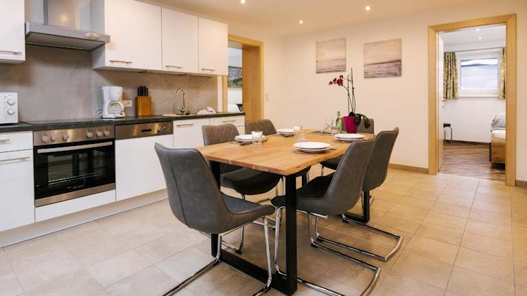 Die Zimmer im Apart Scharler sind mit einem Balkon und Bergblick ausgestattet. Zur Einrichtung gehören ein Sitzbereich, ein Satelliten-Flachbild-TV sowie eine voll ausgestattete Küche mit Kühlschrank, Geschirrspüler, Ofen, Mikrowelle, Herdplatte, Kaffeemaschine und Wasserkocher. Des Weiteren bietet jedes Zimmer ein eigenes Badezimmer mit Dusche und Haartrockner.