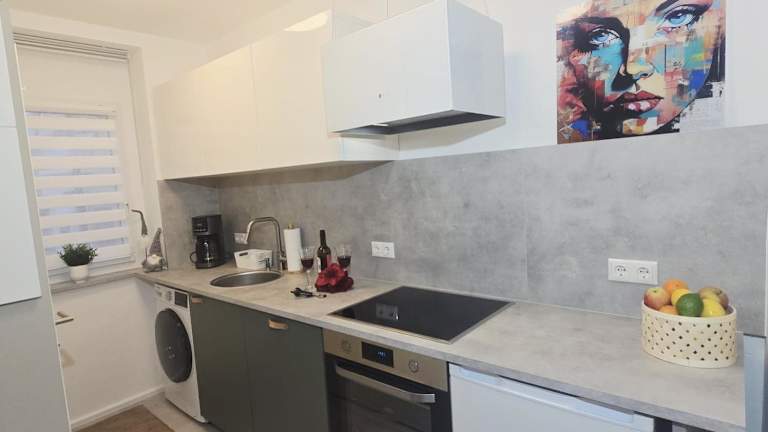 Die Ferienwohnung verfügt über 1 Schlafzimmer, ein Wohnzimmer sowie eine vollständig ausgestattete Küche mit Kühlschrank und Kaffeemaschine. Das Badezimmer ist mit einer Dusche und kostenlosen Pflegeprodukten ausgestattet. Handtücher und Bettwäsche werden zur Verfügung gestellt, und die gesamte Unterkunft ist klimatisiert. WLAN ist in allen Bereichen kostenfrei verfügbar.