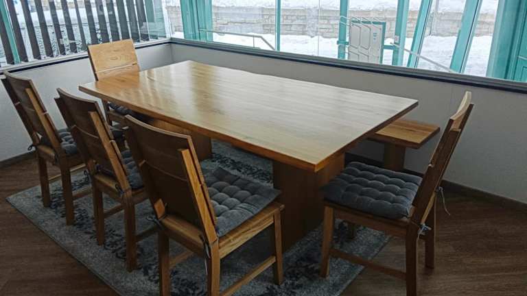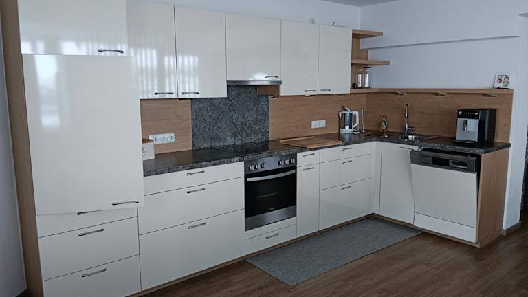 Die Ferienwohnung umfasst drei Schlafzimmer, ein Wohnzimmer, eine komplett ausgestattete Küche mit Kühlschrank und Kaffeemaschine sowie drei Badezimmer mit Dusche und Haartrockner. Handtücher und Bettwäsche werden ebenfalls bereitgestellt.