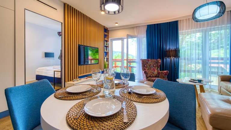 Das Apartment im Apartament 41 Holiday Mountain Residence - 5D Apartamenty bietet seinen Gästen eine komfortable Unterkunft. Mit einem Schlafzimmer, einem Wohnzimmer und einem gut ausgestatteten Küchenbereich mit Kühlschrank und Geschirrspüler bietet das Apartment ausreichend Platz für einen angenehmen Aufenthalt. Vom Balkon aus können die Gäste den herrlichen Bergblick genießen. Handtücher und Bettwäsche werden gestellt.